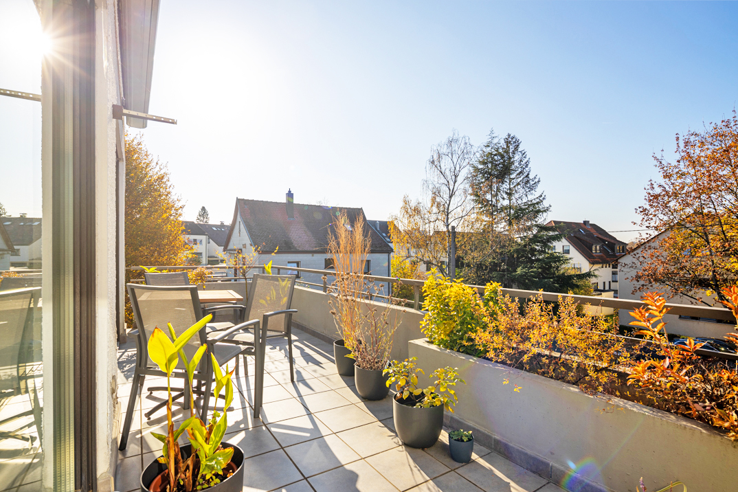 • Ein großer Balkon in Südausrichtung sowie ein weiterer Balkon in Westausrichtung bieten viel Platz für Entspannung sowie für gesellige Momente mit Freunden und Familie.