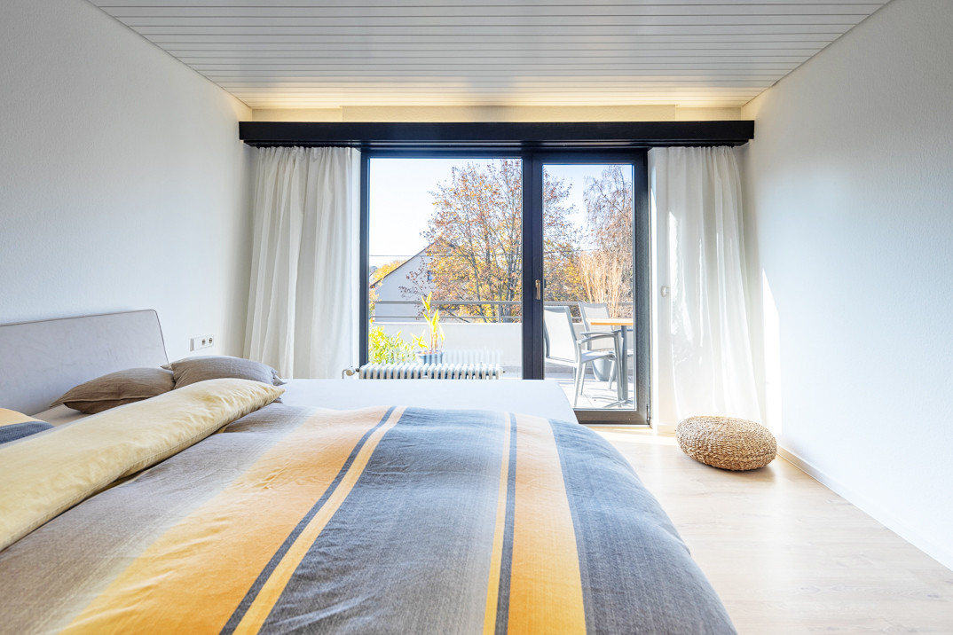 Apropos: Die beiden großzügigen Balkone sind ein echtes Highlight für schöne Sommertage. Wir empfehlen: Stellen Sie eine Sonnenliege auf und lassen Sie sich von den Strahlen umschmeicheln. Beide Balkone sind sehr geräumig, verfügen über elektrische Markisen und sind in jeweils unterschiedliche Himmelsrichtungen ausgerichtet. Folgen Sie also einfach der Sonne – und vergessen Sie Ihren Drink nicht!