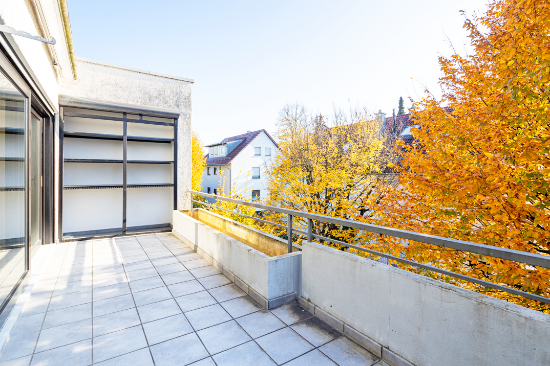 • Ein kleiner Abstellbereich mit elektrischem Rollladen auf dem Südbalkon bietet hier zusätzlichen Stauraum für Ihre Balkonutensilien.