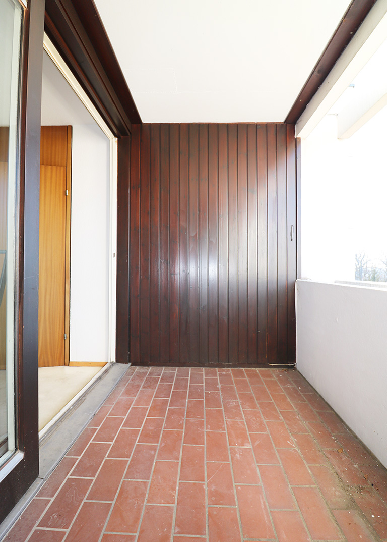 Auf ca. 92 m² Wohnfläche finden Sie hier drei Zimmer. Eines davon, lässt sich idealerweise als Wohn- und Esszimmer nutzen, von hier betreten Sie direkt die kleine Loggia und genießen einen Weitblick ins Grüne.