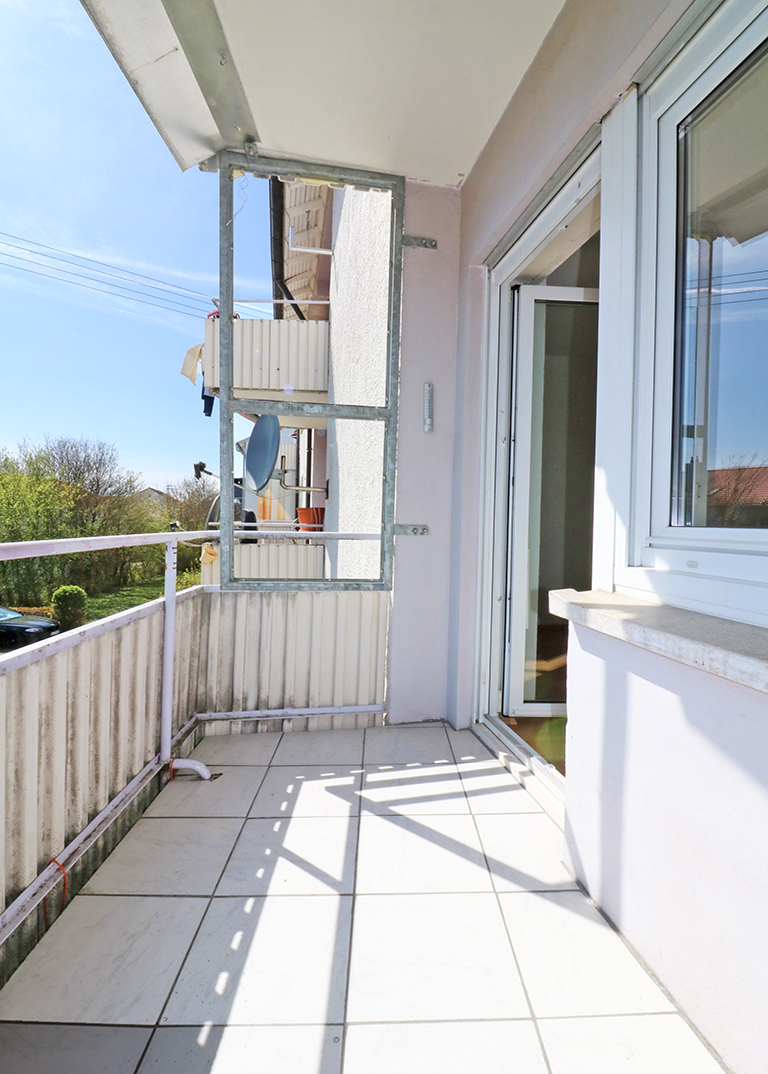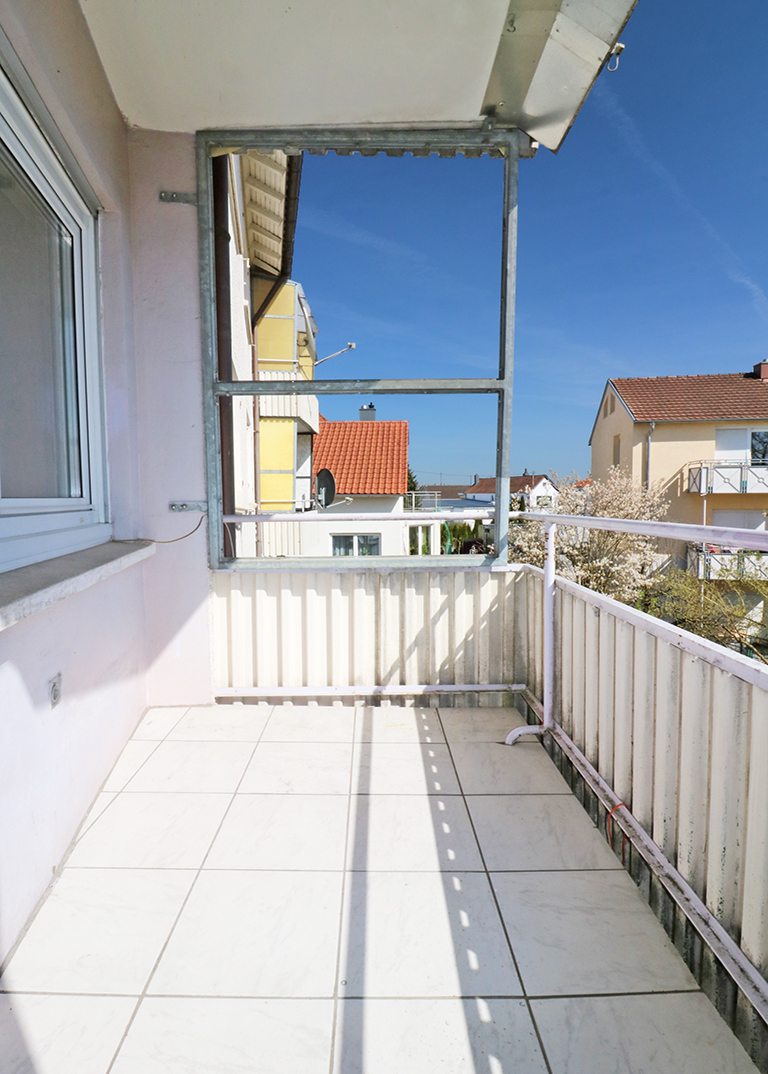 Kommen Sie herein und betreten Sie den Flurbereich, von hier aus gehen alle weiteren Räume ab. Eingangs befindet sich das Tageslichtbad mit einem Anschluss für die Waschmaschine. Alles, was Sie hier im Bad brauchen, können Sie auch bequem verstauen. Das Wohnzimmer bietet mit einer Größe von ca. 17,40 Quadratmetern viel Platz zur Gestaltung einer Wohlfühloase mit direktem Zugang zum Balkon in Südausrichtung. Ob Sie einfach mal draußen in der Sonne entspannen oder sich vielleicht bald aufs Grillen freuen – hier ist Ihr Plätzchen an der frischen Luft! Mit knapp 4 Quadratmetern gilt hier das Motto "klein aber fein".