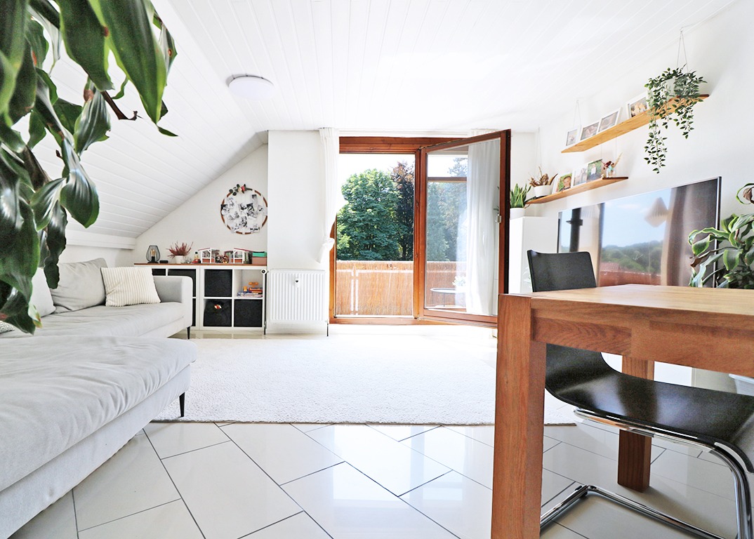Himmelhochweit wohnen: In dieser Dachgeschosswohnung genießen Sie den Blick ins Grüne, Ruhe und Raum für Ihre Ideen
