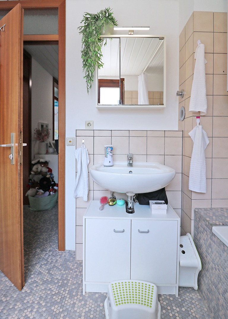 • Raum für Ihre Ideen bieten Ihnen das Tageslichtbad sowie das Gäste-WC – durch den baujahresbedingten Zustand haben Sie hier die Möglichkeit, Ihre eigene kleine Wellness-Oase zu planen.