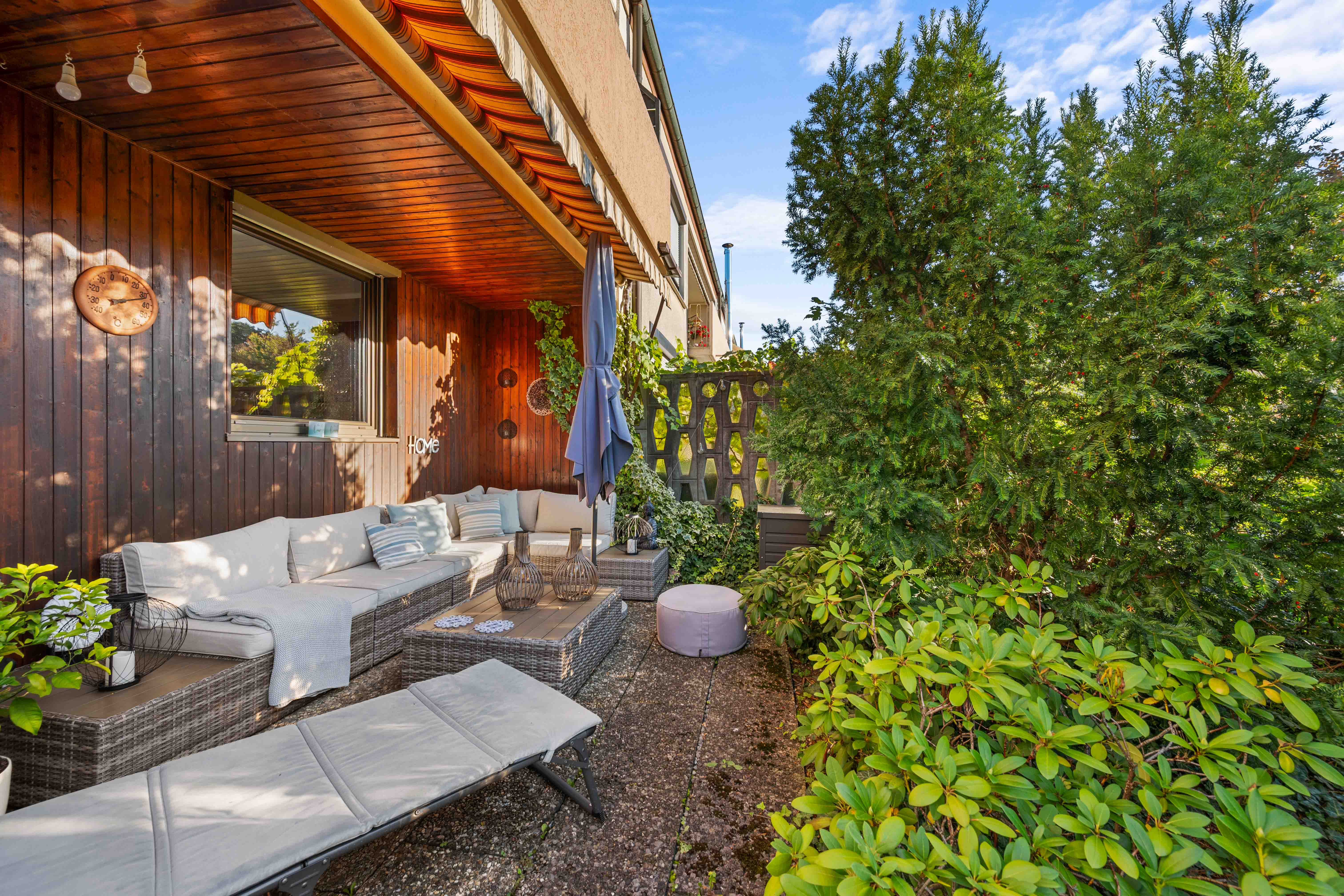 • Eine Terrasse, ein Balkon sowie ein großer Garten in Westausrichtung bieten viel Platz für Entspannung sowie für gesellige Runden mit Familie und Freunden.