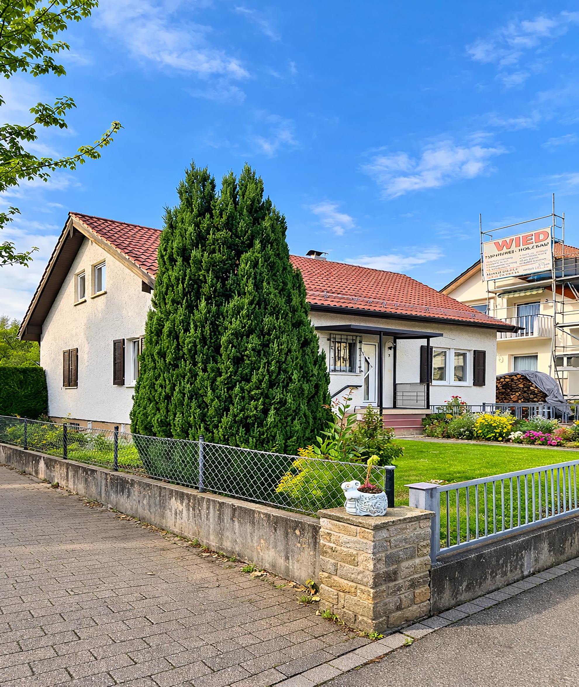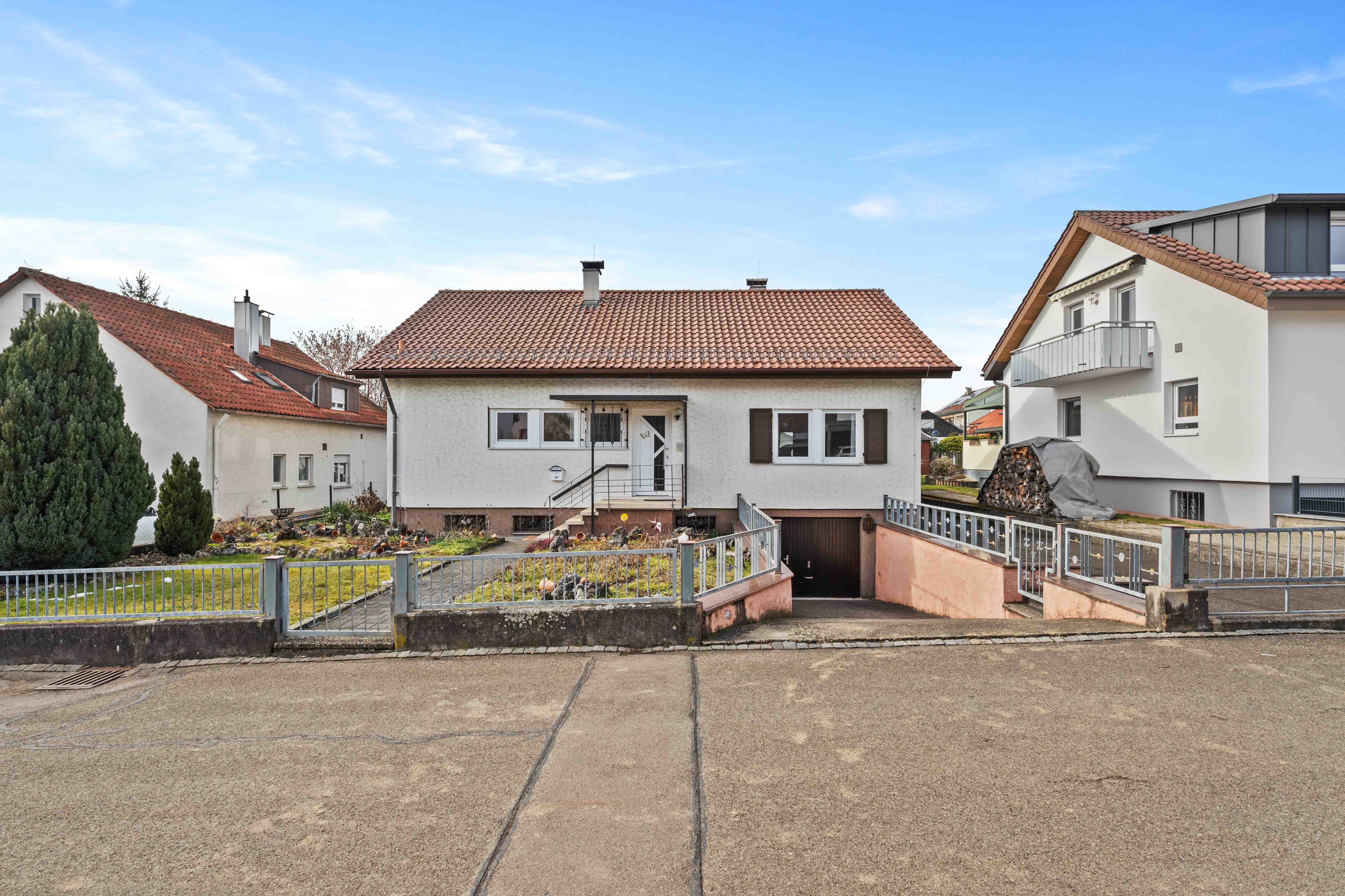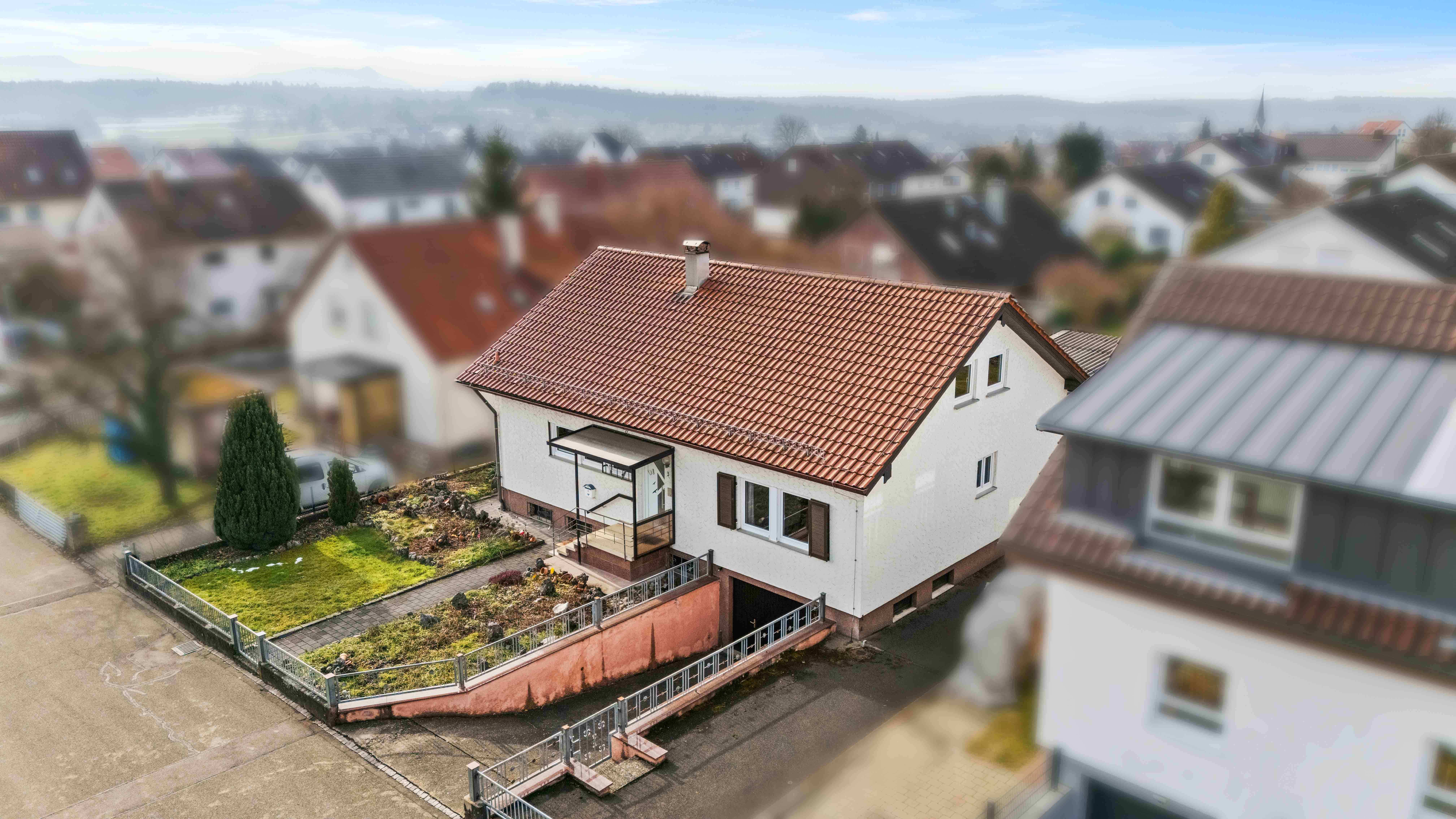 Was diese Immobilie besonders macht, ist das große Grundstück. Schon der große Vorgarten schafft Abstand zur Straße und verleiht dem Haus eine angenehme Präsenz. Hier entsteht Privatsphäre, noch bevor man das Haus betritt.